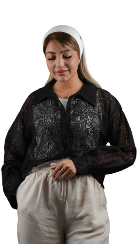 شومیز گیپور جلو بسته گره‌ای مشکی کد 1123
